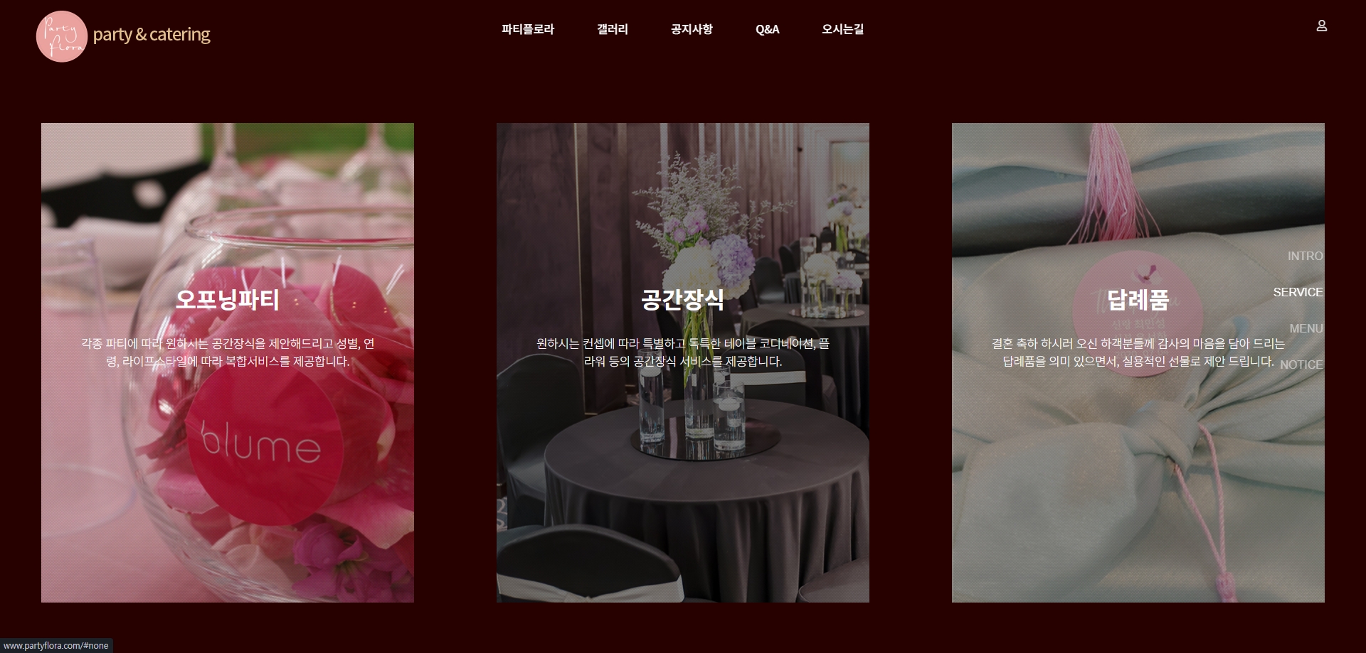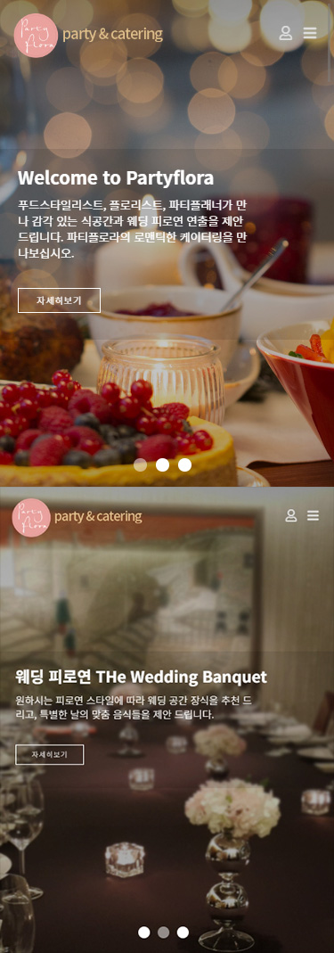 파티플로라(partyflora) 웹사이트의 개발은 프리미엄 파티 케이터링 및 공간 연출의 고급스러움과 전문성을 강조하고, 사용자 친화적인 UI/UX로 고객 접근성과 예약 편의성 정보 제공. 브랜딩 중심의 로맨틱하고 세련된 미니멀 디자인. 주요 서비스 및 포트폴리오 강조. PC, 모바일 등 기기에서 최적화된 화면 제공.